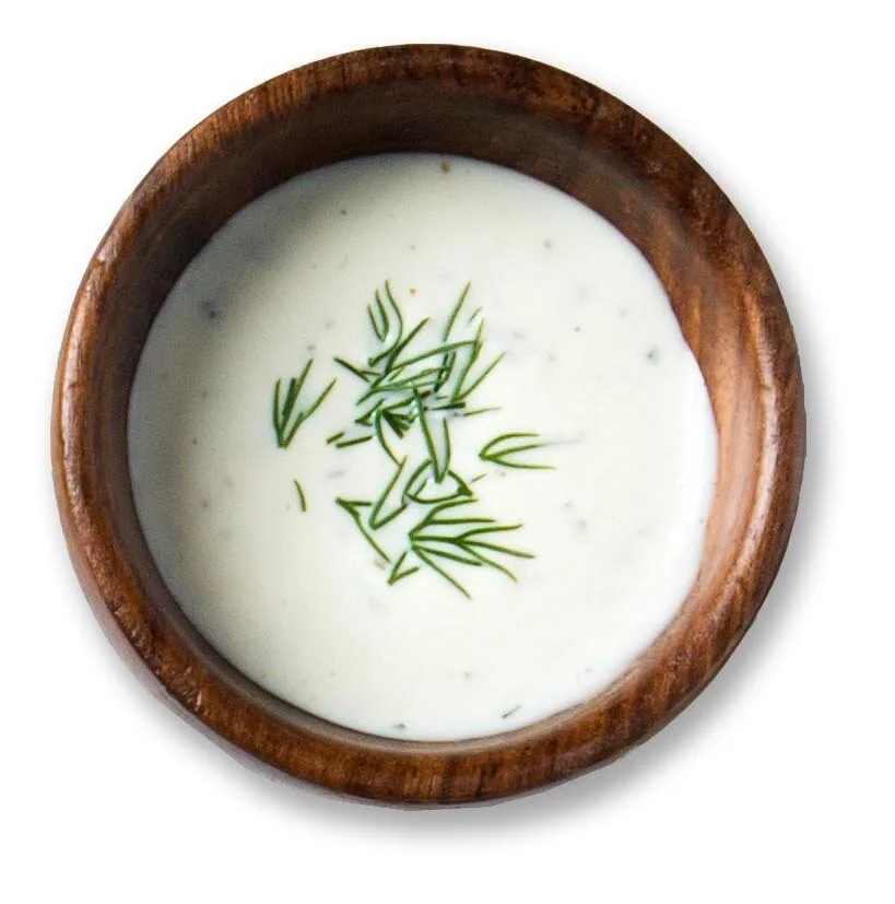 Refreshing homemade yogurt-based, garlic lemon sauce with hint of dill.